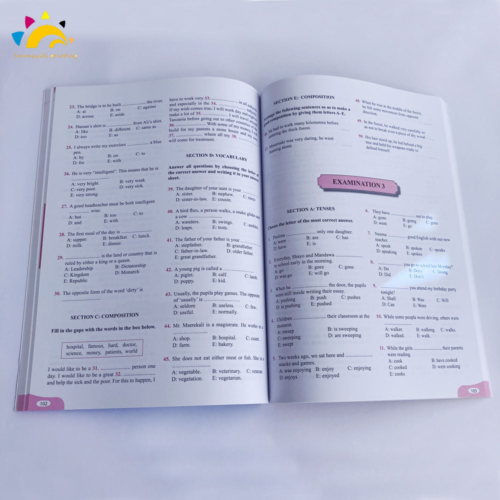 L'impression du livre d'exercices Sunnywell School est de haute qualité et duir sur la liaison avec une imprimerie couleur riche, les spécifications de l'école d'exercice normales sont ci-dessous: